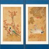 Each panel features various birds and flowers shown in pairs. Most birds are depicted as male and female pairs, symbolizing marital harmony, and their pairing with flowers conveys wishes for family prosperity and unity.