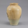 This jar, made in the Goryeo period, is decorated with grass motifs painted in iron-brown on white porcelain. Since celadon dominated Goryeo ceramics, white porcelain was relatively rare. Fired at lower temperatures than later Joseon wares, it is characterized by its ivory-tinted (ya-bai) surface.