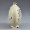 Buncheong ware, created by applying white slip over celadon, appeared during the transition from Goryeo celadon to Joseon white porcelain. The flattened bottle form was introduced in the Joseon dynasty, characterized by a body pressed flat at the front and back.
