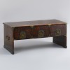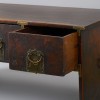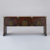 This example consists of a broad top panel (cheonpan), plank-style legs, and three drawers along the front. The dark lacquered finish and pierced metal fittings provide a refined and dignified aesthetic, while side handles were added for ease of movement.