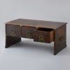 넓은 천판(天板)과 이를 지탱하는 판재형(板材形) 다리, 그리고 전면에 서랍 세 칸으로 이루어져 있습니다. 짙은 옻칠 바탕과 문양이 투각된 금속 장석은 단정하면서도 기품 있는 미감을 보여주고, 측면의 손잡이는 이동의 편리성을 고려하였습니다.